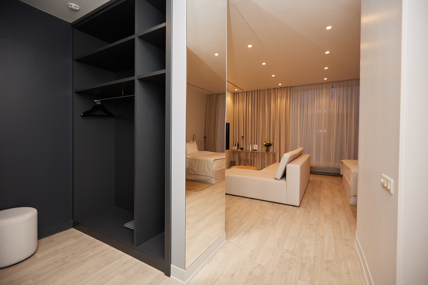 Оттенок Дуб Песочный идеально подходит для небольших комнат — такие молочные тона прекрасно расширяют пространство, добавляя комнате света и тепла.